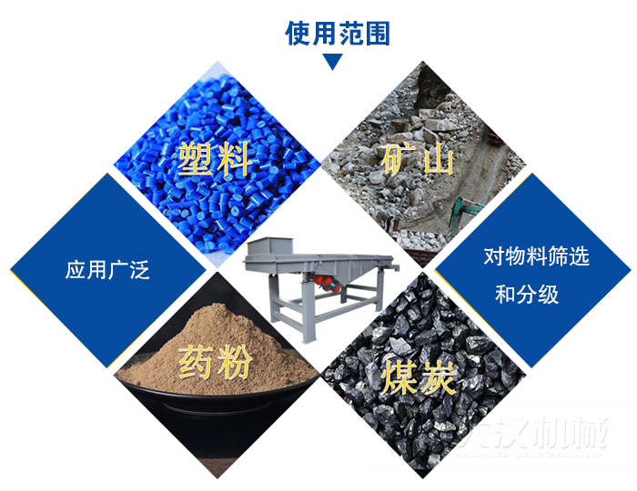 直線振動(dòng)篩可對(duì)粉狀、顆粒狀物料的篩選和分級(jí),廣泛應(yīng)用于塑料、磨料、石英砂、化工、醫(yī)藥、建材、糧食、炭素、化肥等行業(yè)。
