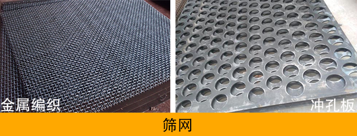 篩網的好壞直接影響篩分的結果,一般來說篩網可分為金屬編織網和沖孔板篩網。當篩分小顆粒、粉狀、漿液狀物料時可以選用金屬編織篩網,物料直徑較大的可選用沖孔板篩網。
