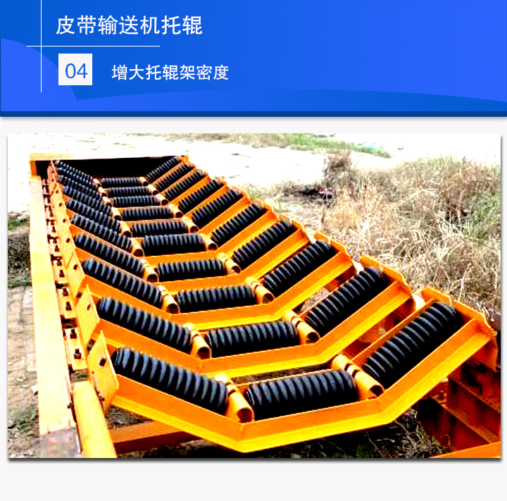 加長導(dǎo)料槽和輸送帶,并增設(shè)3到5米的網(wǎng)式導(dǎo)料護(hù)網(wǎng),以便于將物料擋住,使其順著輸送帶運行方向前移,而不致卡住或掉到托輥架與回程段輸送帶之間。