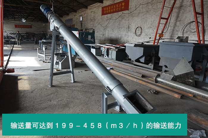 (2)傾斜螺旋輸送機的輸送量大,其輸送量可達到199-458(m3/h)的輸送能力,的同時螺旋輸送機的轉速也相對較高、其特別適用于傾斜和垂直輸送的輸送角度。
