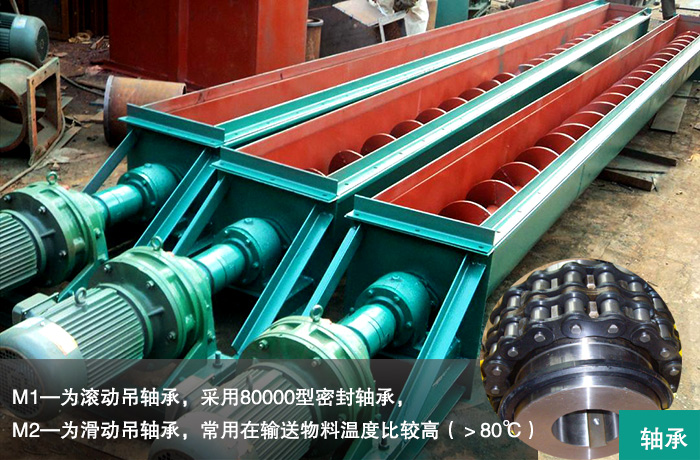 M1—為滾動吊軸承,采用80000型密封軸承,軸蓋上另有防塵密封結構,常用在不易加油,不加油或油對物料有污染的地方,密封效果好,吊軸承壽命長,輸送物料溫度≤80℃。