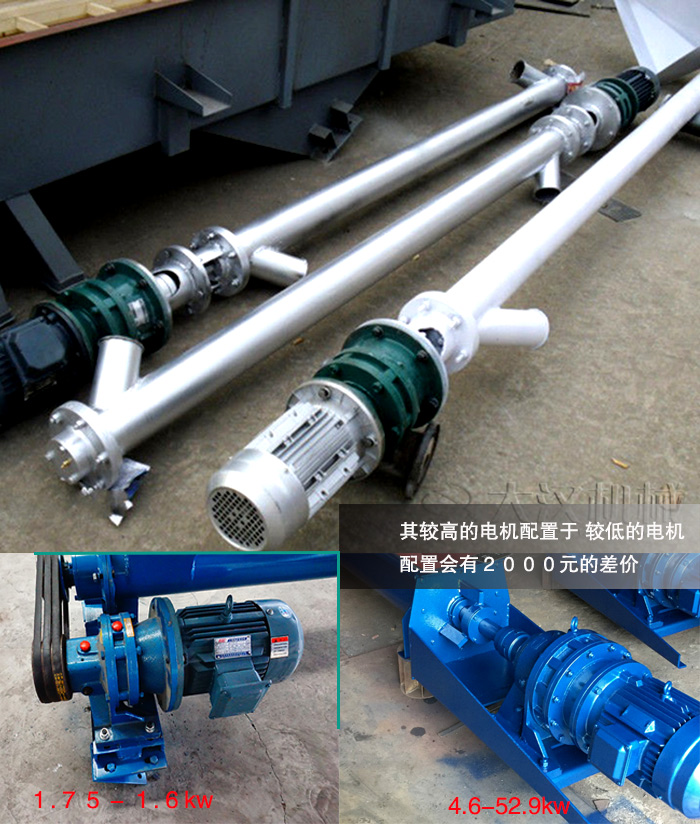 其產品的輸送能力主要來自于,GL行螺旋輸送機所配備的電機,新鄉大漢機械的電機配備都是高功率的電機配置,其較高的電機配置就在4.6-52.9kw以上,其電機的功率較高,相對螺旋輸送機的輸送能力也不會過低,較低的電機配置在1.75-1.6以上的電機配置,與此同在電機上也會有2000元的差價。