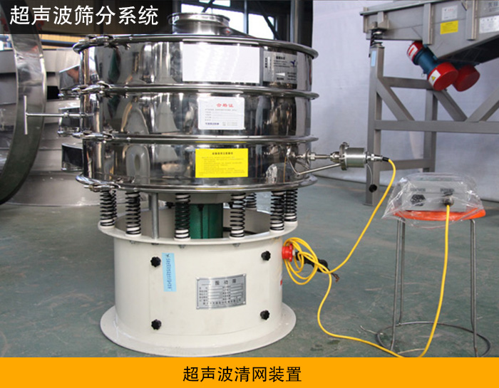 該裝置是利用超聲振動波對篩網進行清網工作。其主要組成部件有超聲波電源、換能器與超聲波網架組成。其原理是通過超聲波電源將常規用電轉換為18KHZ高頻電能,通過換能器作用在網架上,從而解決高精細物料的清網與高效篩分工作。該裝置多用于振動篩分機中,根據需要也可改裝后用于直線篩或搖擺篩中。